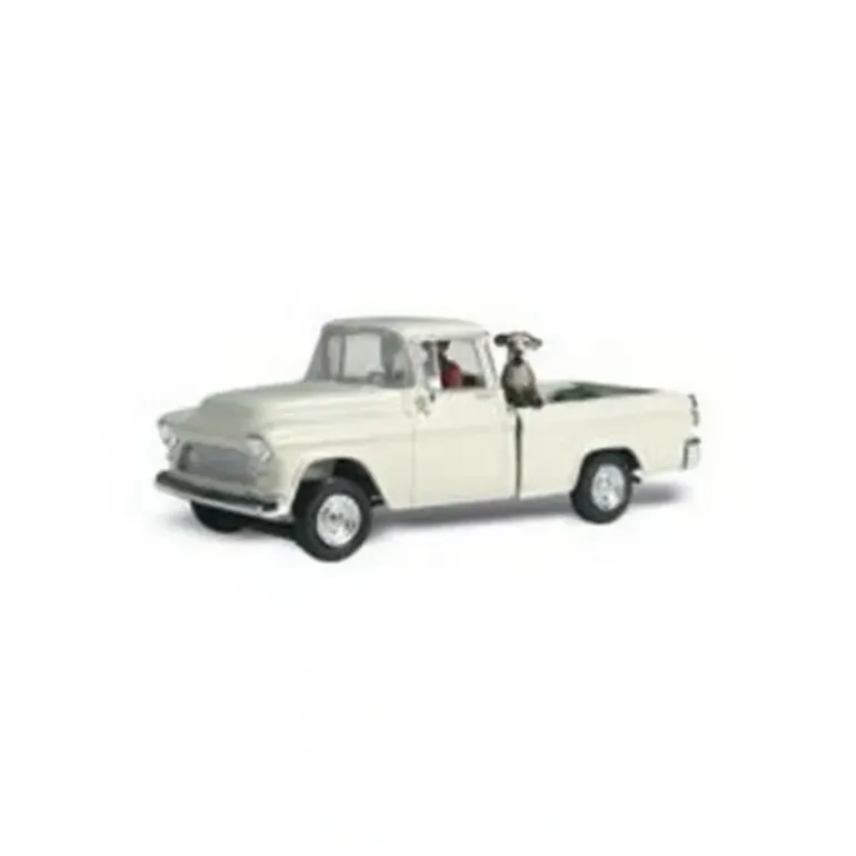 Mr. Hall is haulin Duke (the dog) around in his white pickup (N Scale).