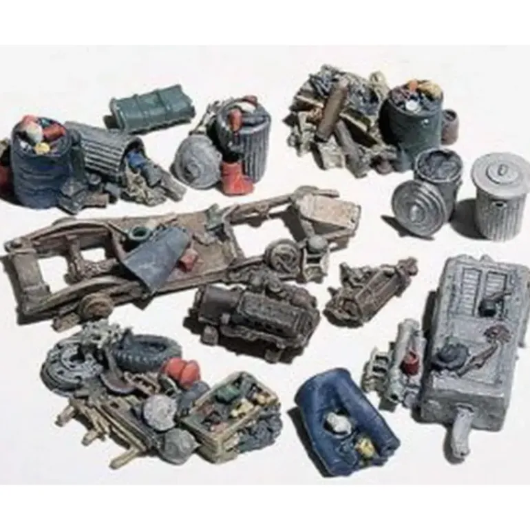 Create a realistic look on your layout with junk. Pile it by old sheds, trackside, near old garages or workshops.