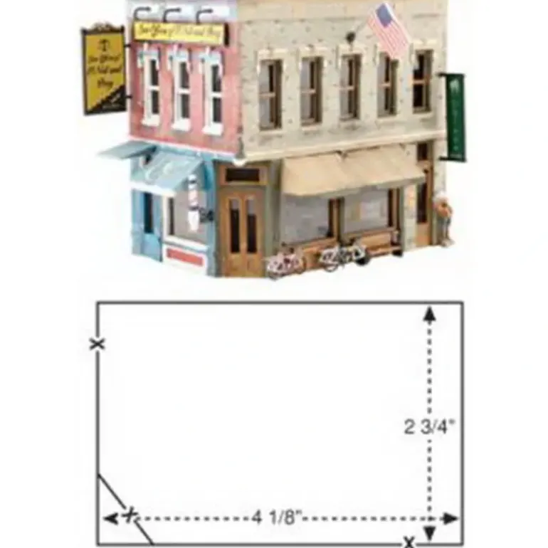 This is a Woodland Scenics PF5182 HO Main Street Mercantile Building Kit. Model a vintage storefront where town residents patronize the local specialty shops of the Main Street Mercantilemom picks up the latest best seller, the kids buy a nickels worth of penny candy, and dad conducts a little business with the local attorney.